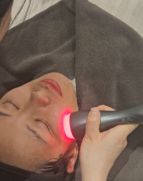 マイクロ電流と筋肉刺激により肌の弾力に効果的なEMS(低周波)+RF(高周波)+微弱電流を組み合わせたレーザー施術です。